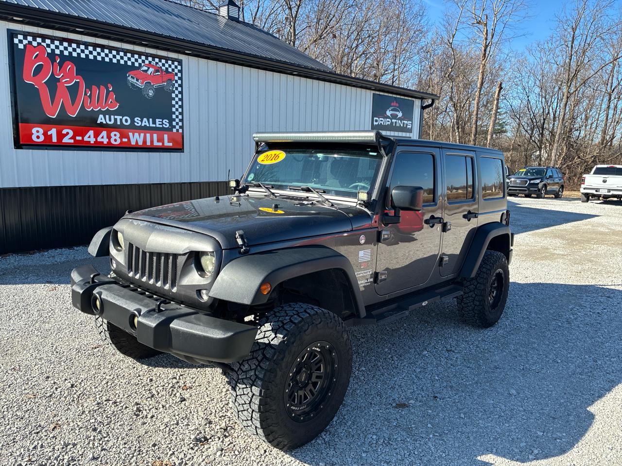 Hop into this sleek 2016 Jeep Wrangler and prepare for adventure! With its rugged exterior and powerful engine, this gray beauty is ready to tackle any terrain you throw its way. Take the top off and feel the wind in your hair as you cruise down the open road, feeling like a true explorer. The spacious interior ensures comfort for you and your passengers, whether you're driving around town or hitting the trails. With its four-wheel drive capabilities, this Jeep is perfect for off-roading and exploring off the beaten path. So pack your gear, grab your friends, and get ready for some unforgettable journeys in this versatile and reliable vehicle. The spirit of freedom and adventure awaits you in this awesome 2016 Jeep Wrangler!Visit Big Will's Auto Sales online at www.bigwillsauto.com to see more pictures of this vehicle or call us at 812-448-9455 today to schedule your test drive.